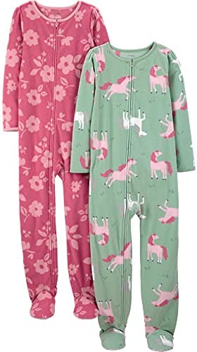 Keep your little one cozy through the night in soft fleece 1-piece pjs featuring fun floral + horse prints, built-in footies, and an easy ankle-to-chin zipper.