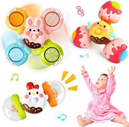 Spinner Suction Cups Toy: The design of rotating and pressing, the cute cartoon shape, the middle part can make a pleasant sound, these will attract the attention of children and make them full of interest.Contains 9 colors and from 1-9 numbers spinning top toy also can cultivate kids' Color recognition and Number learning ability, Which is one of the best toys to accompany with your baby