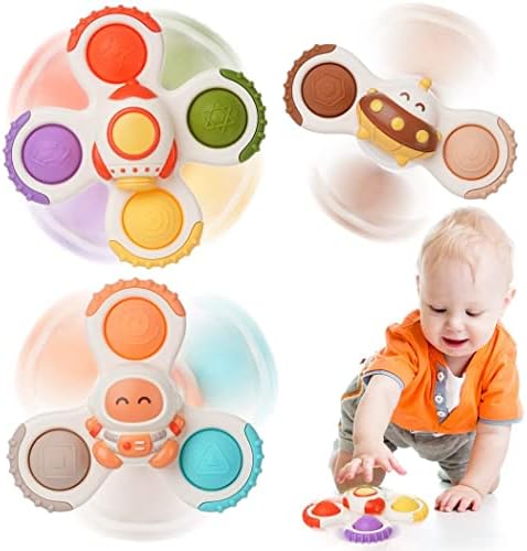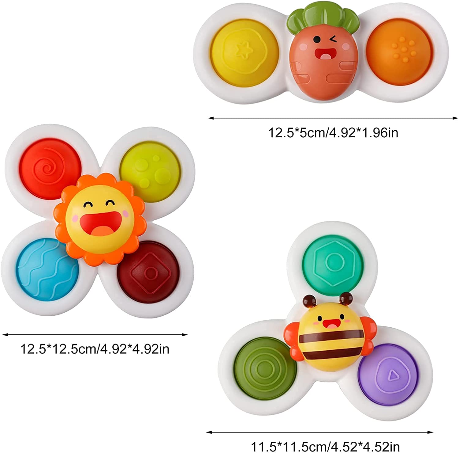Suction spinner toys for babies: The shape is sleek, non-toxic and durable, use high-quality food-grade soft silicone, it does not contain any harmful substances,which is more comfortable to play, easy to grasp, will not harm children, so your child can play with confidence and cares for the kids tender hands