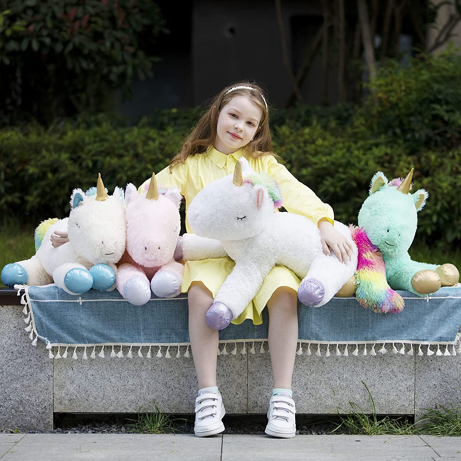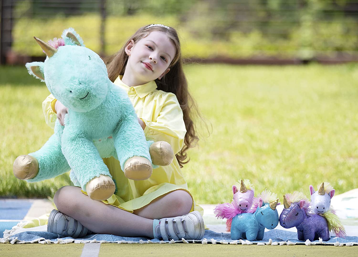 • YOU WILL RECEIVE: A super cuddly 24 inch green unicorn and four lovely 8 inch colorful little unicorns.