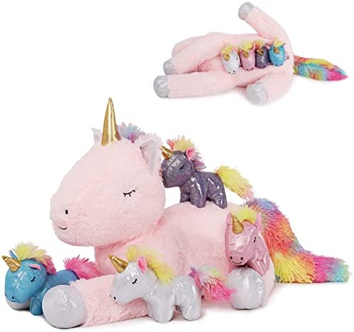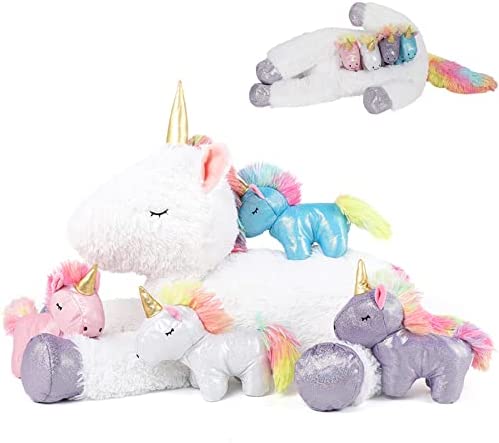 • UNIQUE DESIGN:There is a zipper on the belly of the unicorn. When you open the zipper, you can see 4 little unicorns inside it.