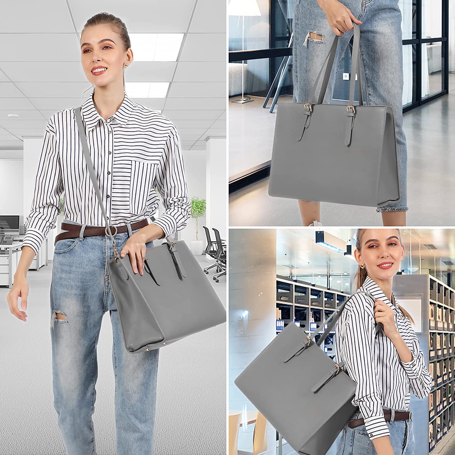 • 【Large Capacity Laptop Bag】The women laptop bag size in 17" L x 6" W x 11.5" H. The Computer bag is structured and roomy, and can accommodate a 15.6-inch laptop, thickened soft foam protective pad lining can fully protect your laptop from accidental impacts and scratches. In addition, the large-capacity shoulder bag can also store iPad, books, A4 files, mobile power, mobile phones, folders, passports, cosmetics, etc.It can carry all your essentials!