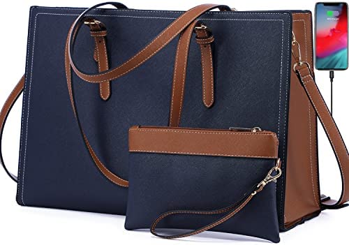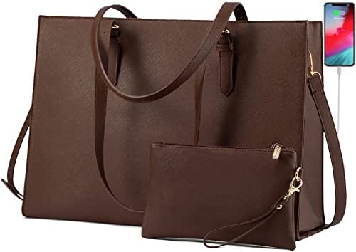 • 【Multi-pocket Design】Multiple pockets keep your belongings organized. The handbag structure consists of a 15.6-inch laptop pocket, an iPad pocket, a middle zipper pocket, an internal side zipper pocket, two large opening compartments, two small opening pockets, two pen pockets and an outer zipper pocket. And an external USB charging mouth.