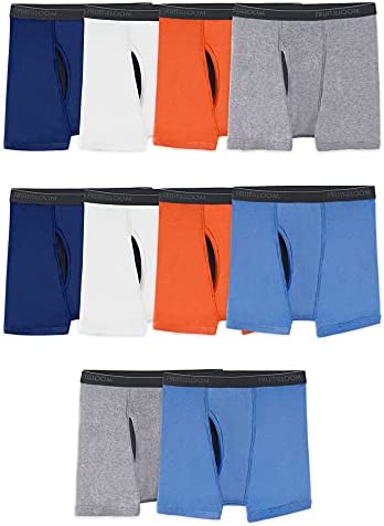 These Fruit of the Loom boys boxer briefs were designed with the most comfortable fit in mind. Not only is the fabric soft, but the soft, flexible waistband and tag-free design add an extra touch of comfort that will make these briefs your son’s favorite pair of underwear. The larger pack size makes for a great value and lasts longer between laundry days.