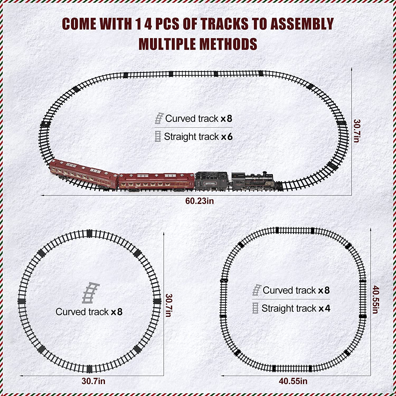 - ?【PERFECT CHRISTMAS TOYS GIFTS FOR KIDS】:This kids train set is a meaningful gift for every child. Model train toys for boys not only allow your kids to play happily, but also allow them to get a close look at the development of industry and technology.During the holiday season, you can also place the Christmas train under the Christmas tree to add a festive atmosphere.These are perfect birthday/Christmas toy gifts for 3 4 5 6 7 8 9 10+ year old boys/girls.