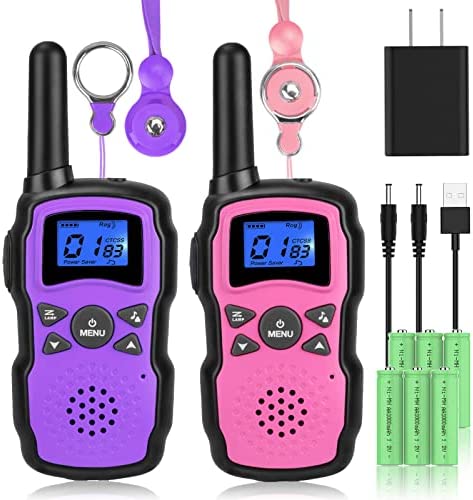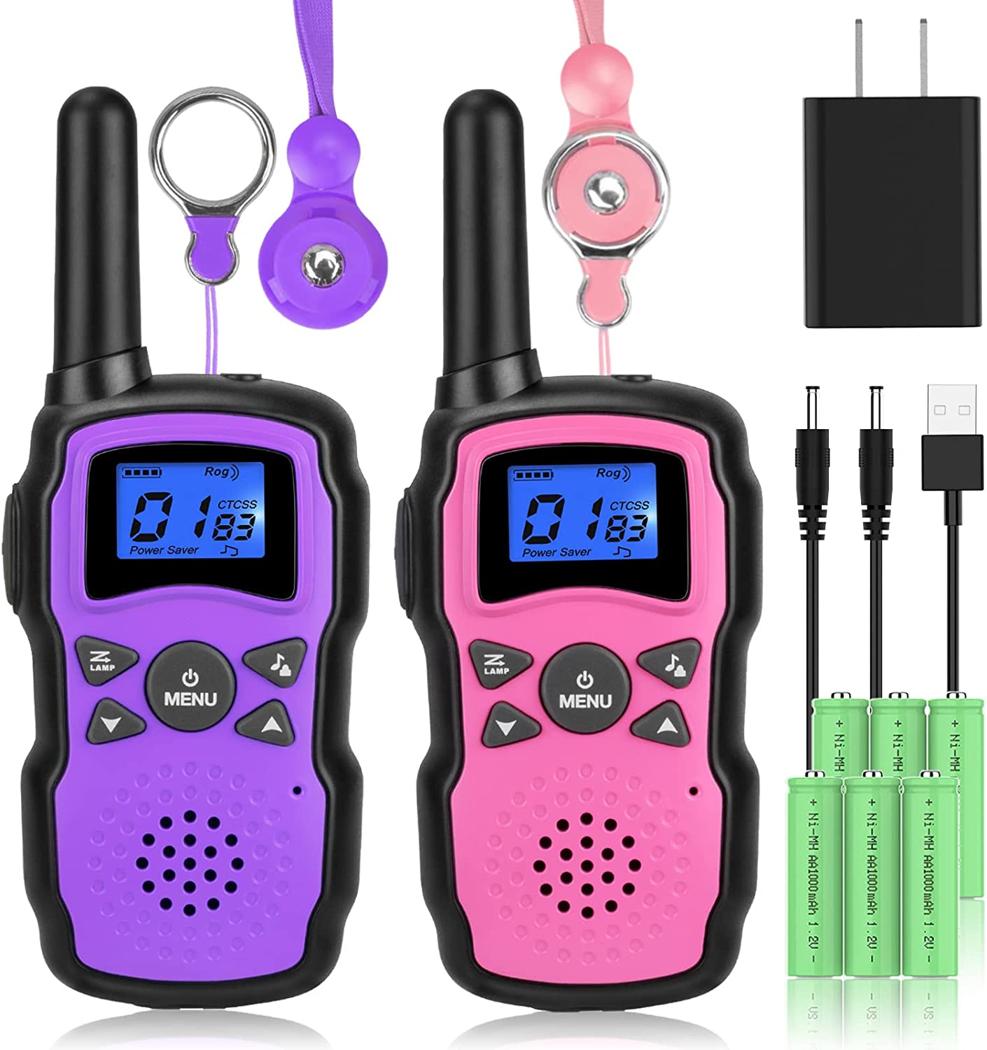Wishouse Walkie Talkies for Kids Rechargeable with USB Charger 6000mAh Battery,Outdoor Camping Games with Flashlight Lanyard,Toys for Girls,Halloween Xmas Birthday Gift for Children 2 Pack Pink Purple