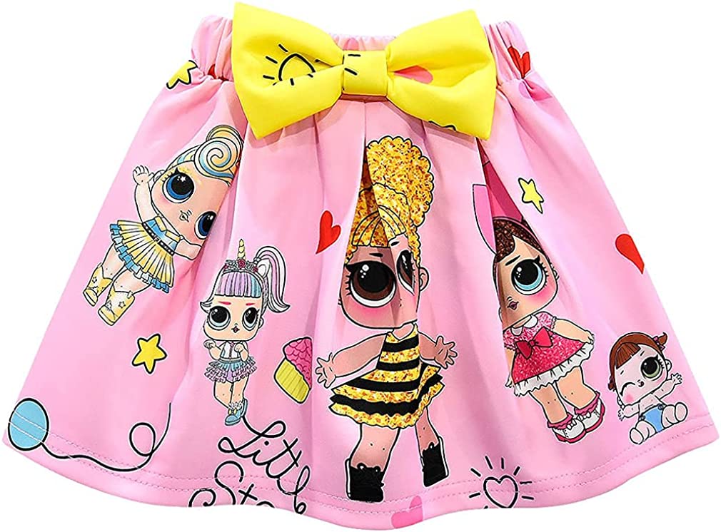 Bololoc Girls Birthday Clothes Cartoon Short Sleeve Shirt Skirt Set Princess Party Outfit for Girl Gift 2-8Years