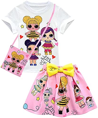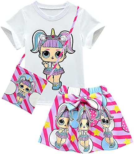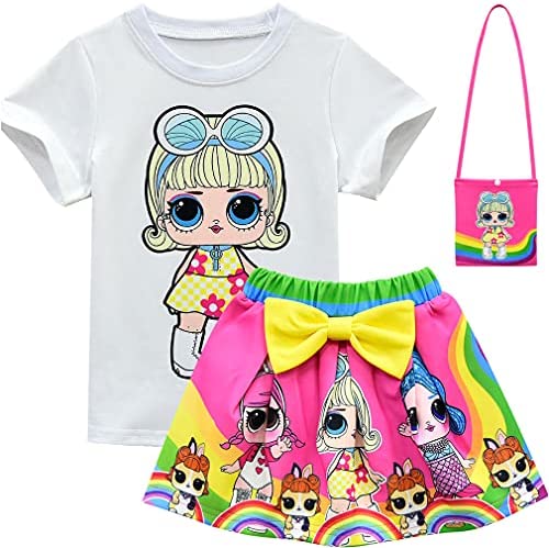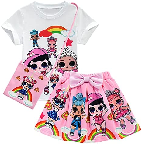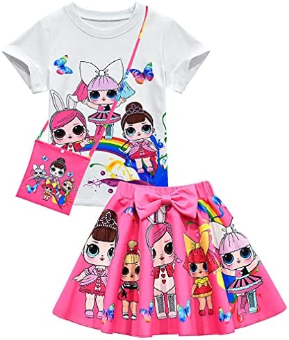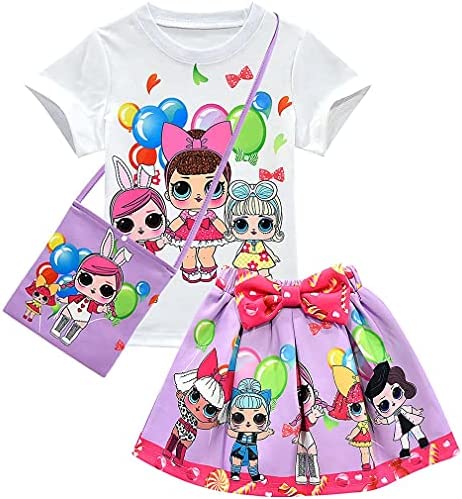 Fit 2-8Years little girl. Fun Short Sleeve high quality Cotton and skirt, bag set. it's Well made, adorable and much more beautiful than pictures, kids will like it as gift, highly recommend.