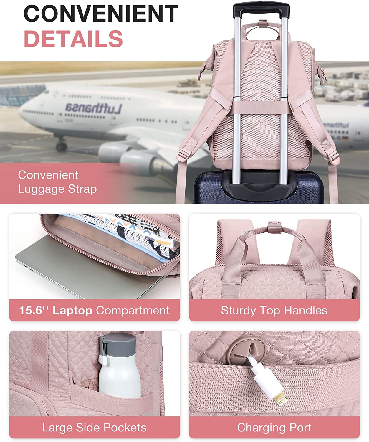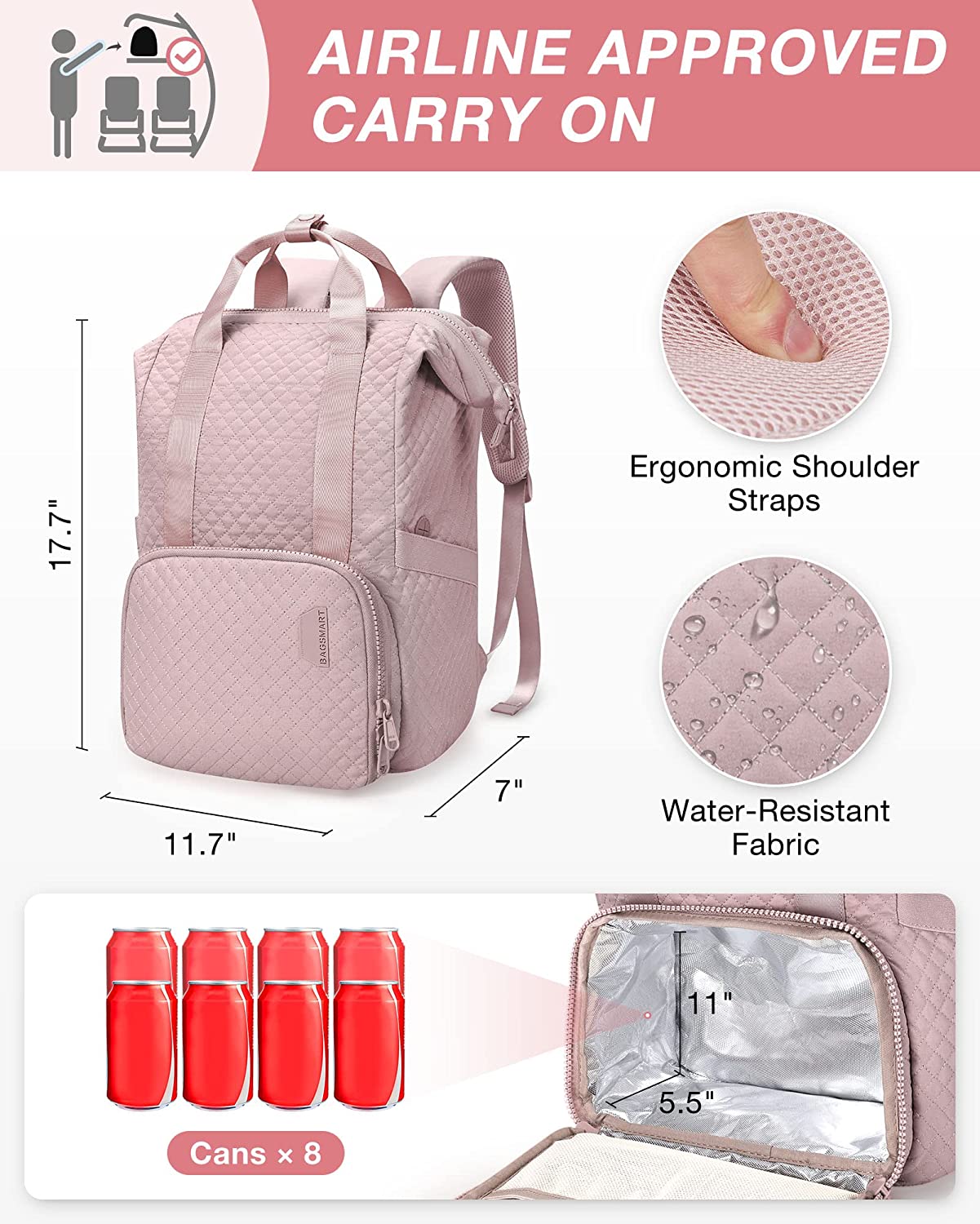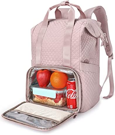 BAGSMART Lunch Backpack, 15.6 Inch Laptop Backpack for Women, Insulated Cooler Lunch Box Water Resistant Leakproof Lunch Bag College School Bookbag for Women Men Daily Work Travel (Pink)