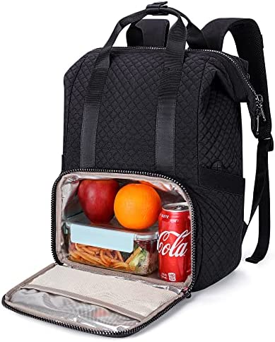 【ALL-IN-ONE BACKPACK】No more carry separate purse,laptop bag and lunch bag in work, travel or school! Simply together in one backpack. Multi-compartment backpack dedicated padded laptop compartment plus built in insulated cooler lunch box on the front, and wide open roomy main compartment for daily stuff. Dimensions: backpack:11.7”Lx 7”Hx 17.7”W, insulated cooler portion:11.7”L x 11”H x 5.5”D