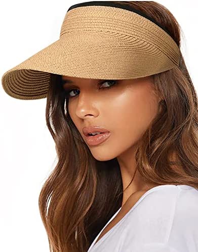 Wide brim Straw Visor: The length of the womens visor's brim is 13cm, and the longer brim provides you with more comprehensive UV protection; Women's sun hats have UPF 50+ sun protection function; The straw beach hat helps to cover your face, thereby protecting your skin from Ultraviolet rays damage and may prevent age spots;