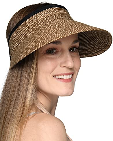 Portable:This breezy straw visor rolls up and secures with an elastic band for easy storage in your tote or trunk;