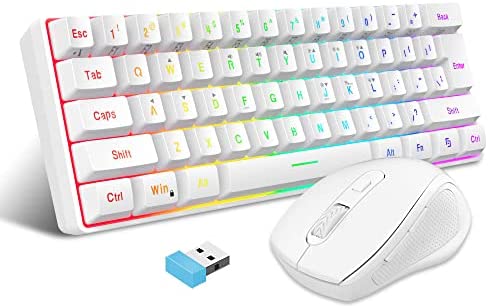 - 【Small Gaming keyboard and Mouse Combo】The scientific choice is a wireless compact 60% keyboard and a cute pocket-sized mouse, which strives to create a perfect combination of gaming and office. Slim and lightweight design makes it not occupy much space and provide convenience for travel.