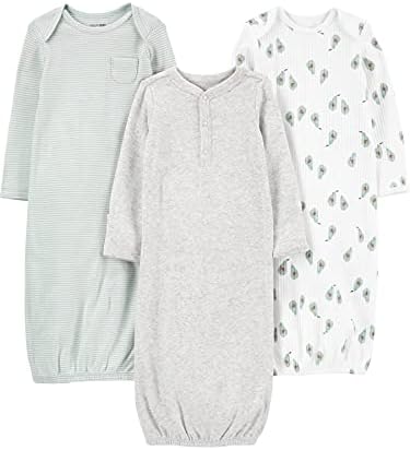 A three-pack of long-sleeve gowns are made with cuddle-ready cotton, a lapped neck, cinched hems, and playful prints.