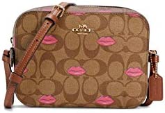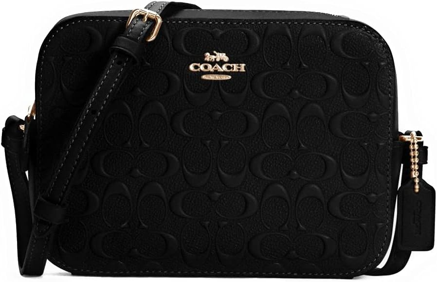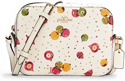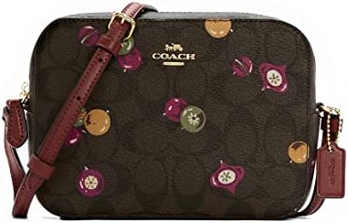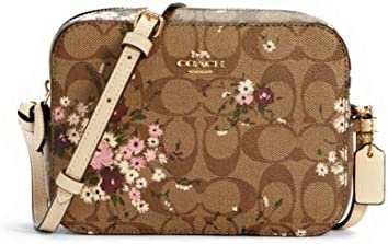Signature perforated leather Two credit card slots Inside multifunction pocket Zip closure, fabric lining Outside open pocket Adjustable strap with 23" drop for shoulder or crossbody wear 7 1/4" (L) x 5 1/4" (H) x 2" (H)