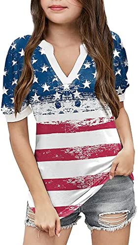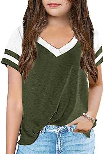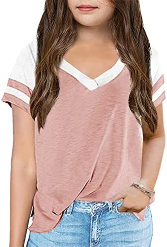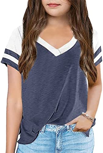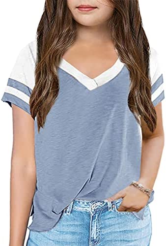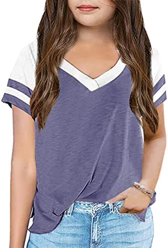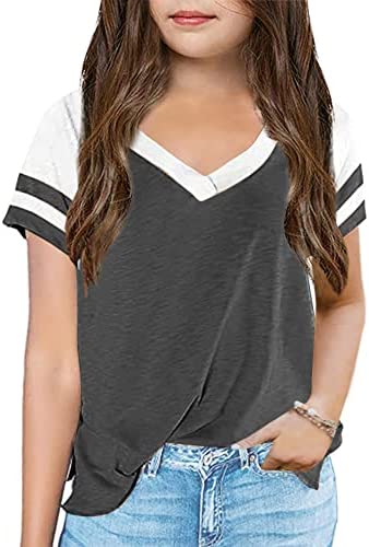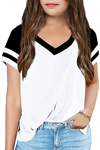 Kids Tops V Neck Short Sleeve Summer Tshirts Girls Color Block Side Split Loose Athletic Tees