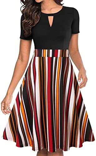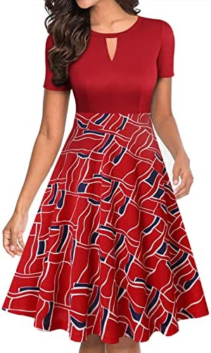 HUGS YOUR CURVES FITS PERFECTLY : Women's casual swing a-line party dresses features cute well cut and hugs your curves perfectly. Elegant women's wear to work dresses skirts flowing very pretty and accentuates your figure.This women's fit and flare dresses have a elegant feminine look!