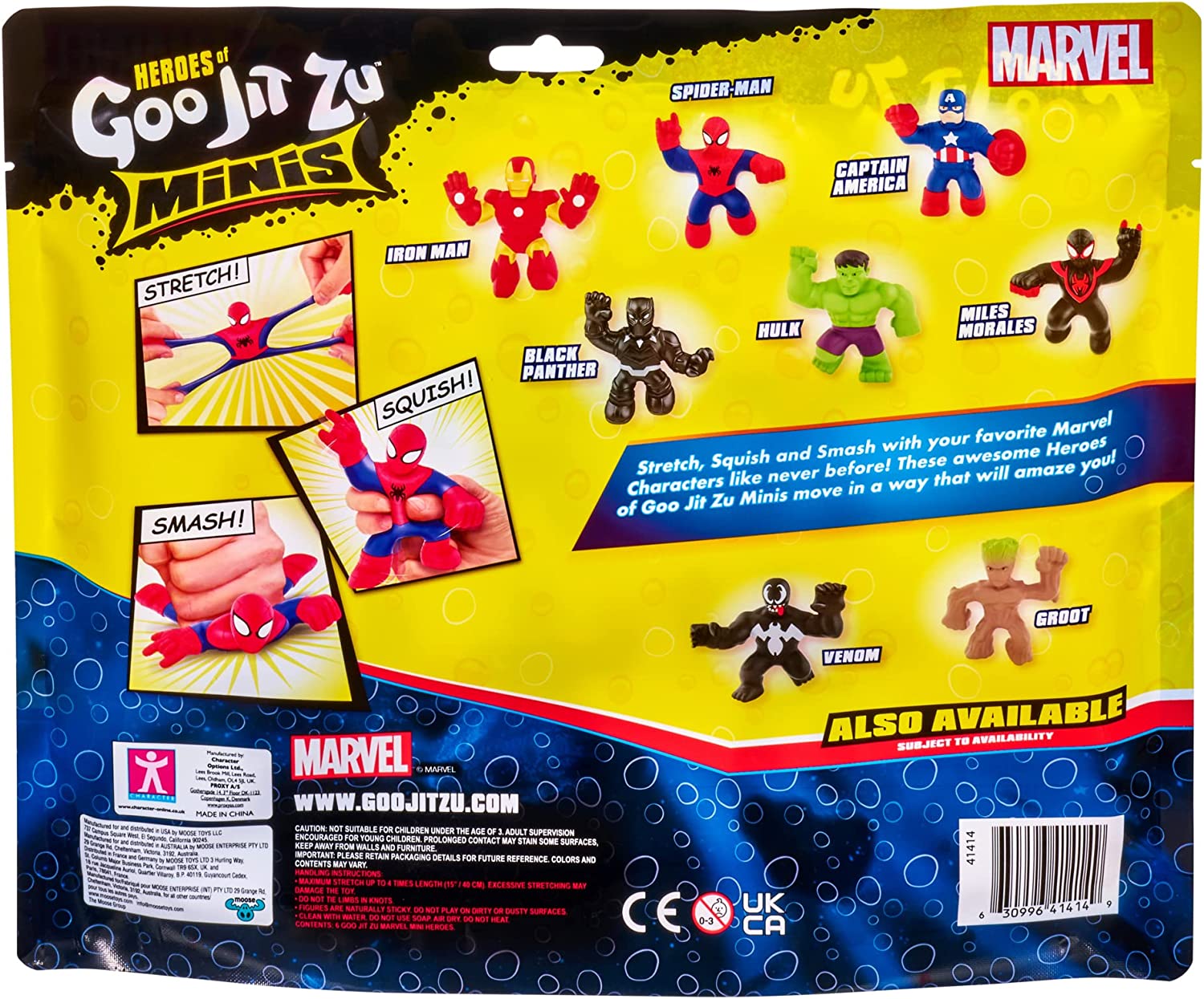 Heroes of Goo Jit Zu Marvel Mega Mini 6 Pack - Squishy, Stretchy, Gooey Mini Heroes - Ironman, Spider-Man, Captain America, Miles Morales, Hulk and Black Panther