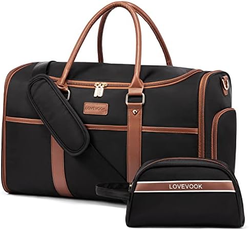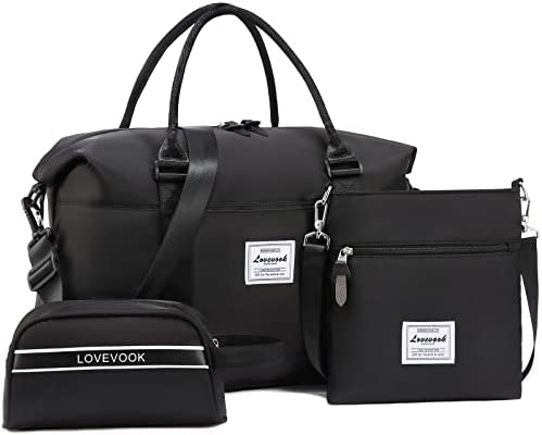 • 【DRY WET SEPARATED TOTE BAG+FREE SEPERATE TOILETRY BAG】:1. comes with a $14 toiletry bag 2. comes with adjustable & detachable sling strap and unremovable handles.This is LOVEVOOK's latest upgrade combination weekender travel bag set: adds seperate wet Pocket & toiletry bag,The high density water resistant material can help you to separate dry items and wet items,very cute large tote bag,multi-function, large capacity,convenient for you to put wet clothes or towels in this crossbody bag
