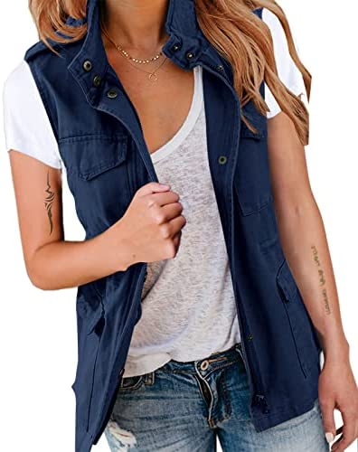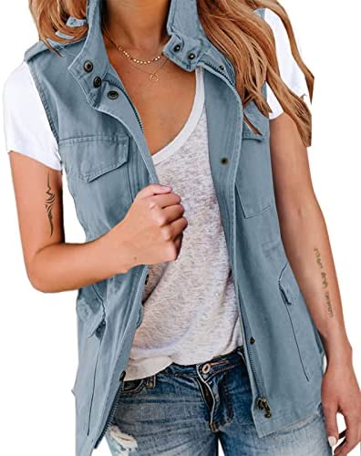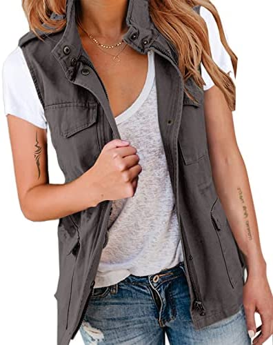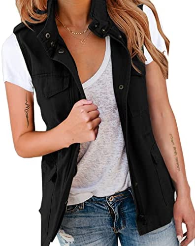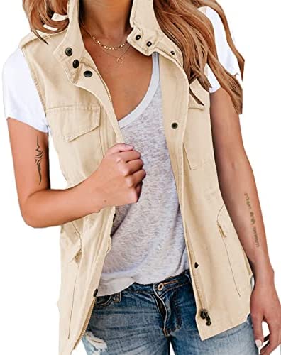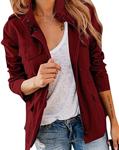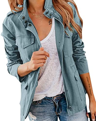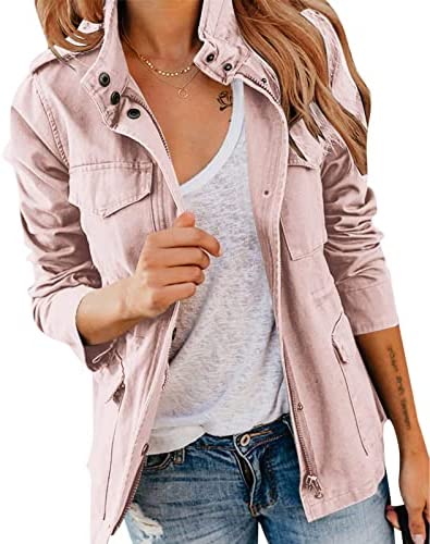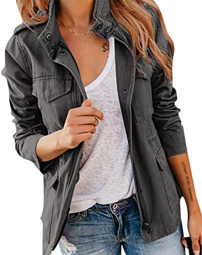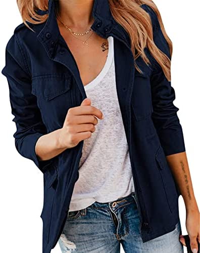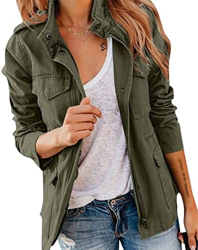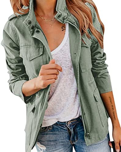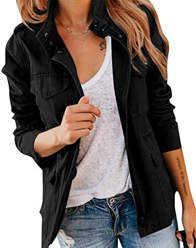 Pepochic Womens Military Jacket Zip Up Snap Buttons Lightweight Utility Anorak Field Safari Coat Outwear…