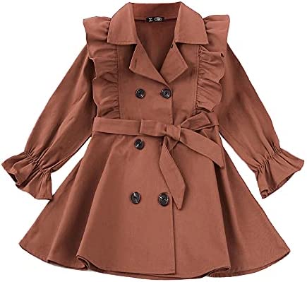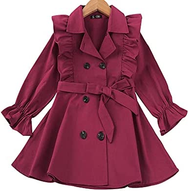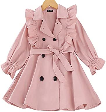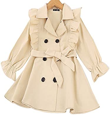 Feature: This baby girl's trench coat is button-down closure. Adjustable bow belt. Please notice that the jacket doesn’t have any belt loops to hold the belt. The tie around the waist is removable. You can also open it as a coat. Ruffle long sleeve. Elastic cuffs, Give your princess plenty of space to grow. Playful and adorable. Make your little girl adorable and charming, never out of style. A must-have for the princess autumn/winter wardrobe