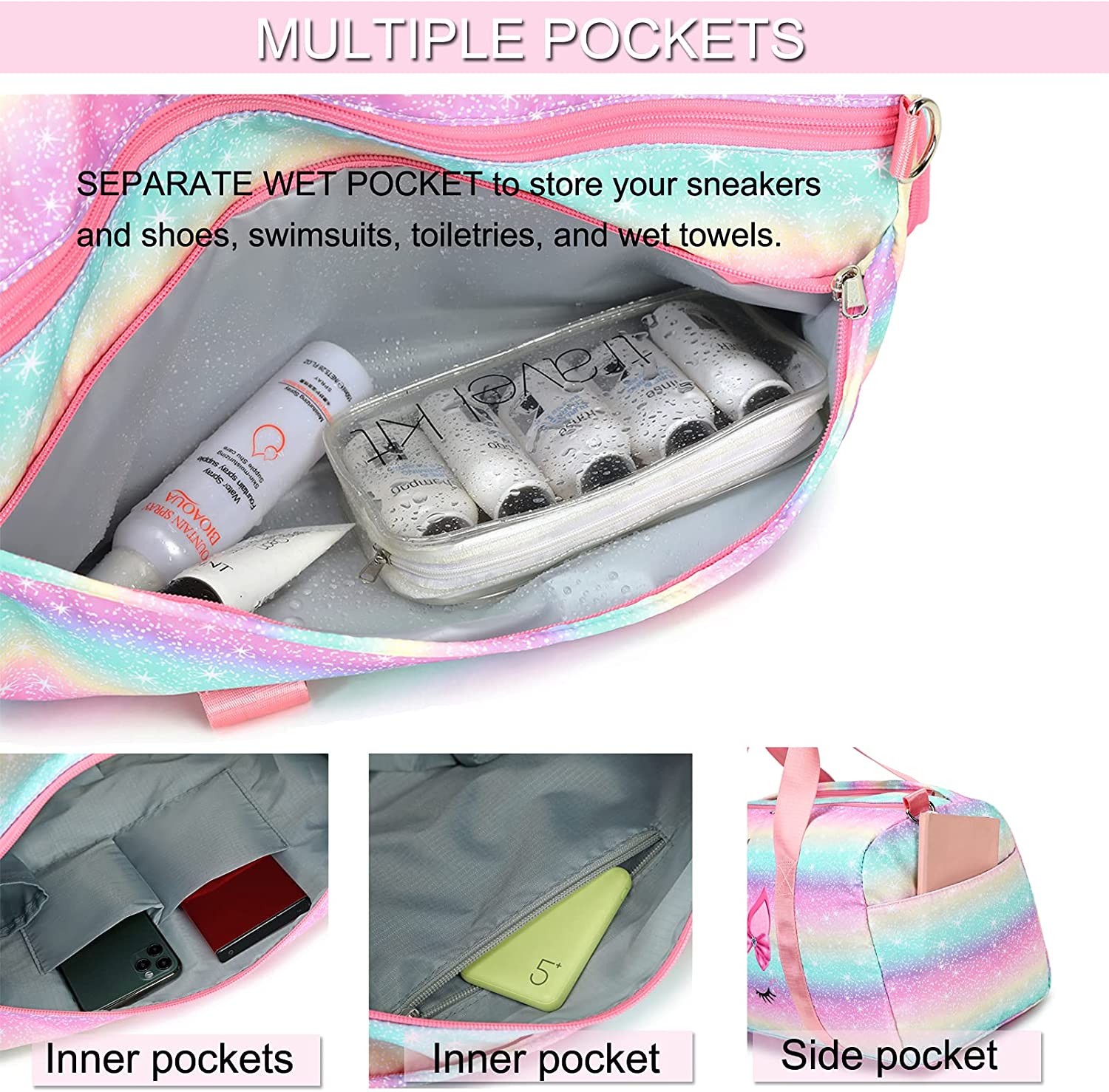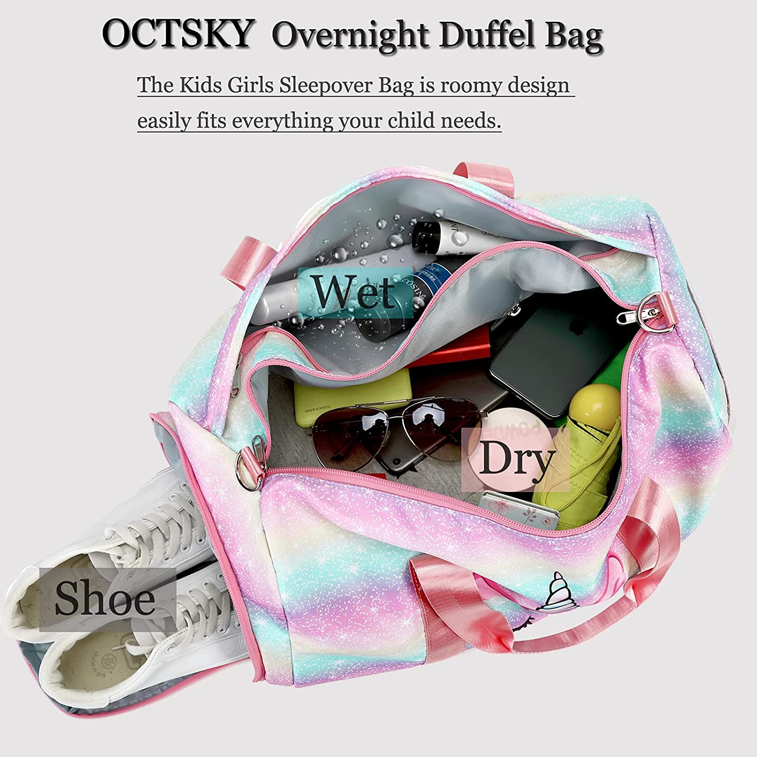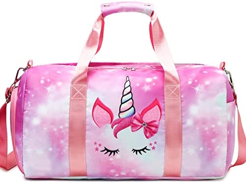 Dance Bag Girls Gymnastics Bag Kids Overnight Duffle Bag Unicorn Gym Sports Ballet Bag with Shoe Compartments, Kids Travel Weekender Sleepover Carry On Bag