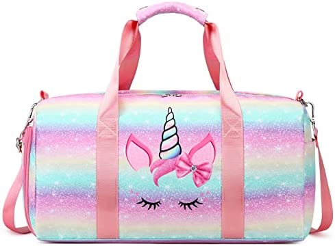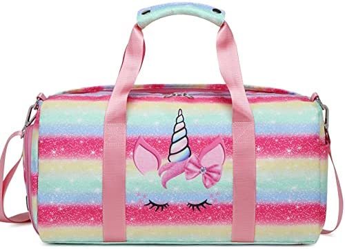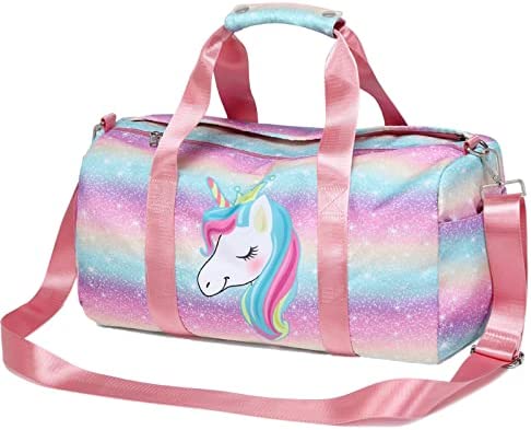• 【DANCE BAG FOR GIRLS】The kids duffle bag with cute rainbow unicorn printed design makes the little girls fall in love with it quickly, the fabric is safe and water resistant(This will protect your inner items from drizzle, while not in heavy rain.) perfect birthday/Christmas New Year gift for kids.