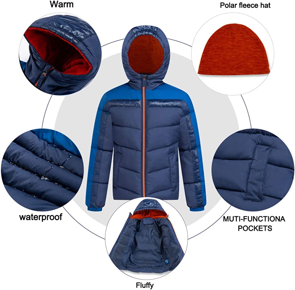 HZXVic Boys Warm Winter Coat With Hood, Thicken Puffer Jacket Kids Waterproof Parka Lightweight Outdoor