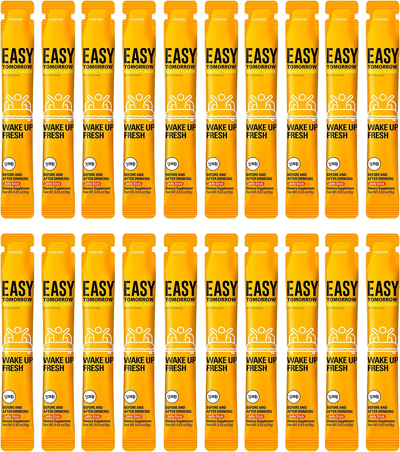 Easy Tomorrow Jelly Stick Before/After Drink Alcohol, After Party Recovery & Relief for Great Night & Better Morning, Party Vacation Aid, Liver Cleanse Detox, Mango Flavored, 상쾌환, 20 Packets