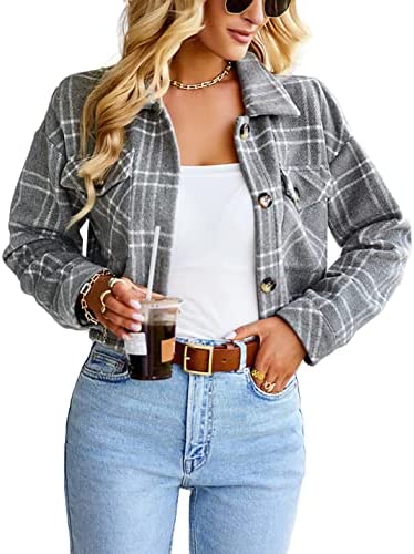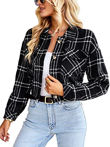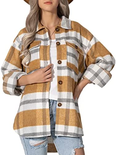 Lviefent Womens Casual Wool Blend Plaid Flannel Shackets Jacket Button Down Shirt Coat
