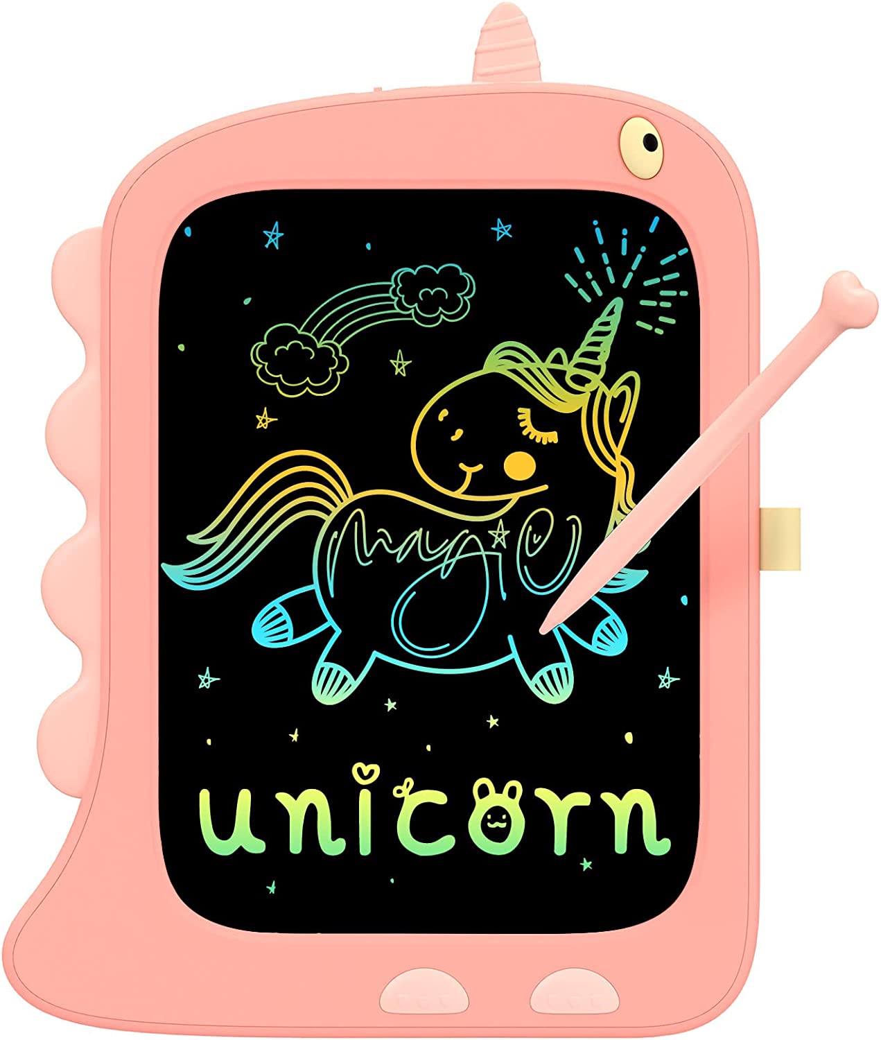 【100% Safety & Happiness Guarantee】Safety is always the important point when choosing toys gifts for kids. The dinosaur LCD writing tablet is made of non-toxic ABS material. Anti-fall and waterproof screen. Screw to lock the battery slot. Kids can play with the drawing board safely.
