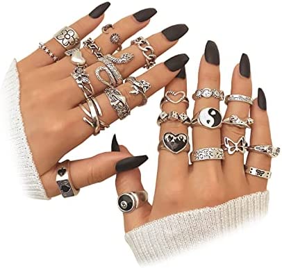 [VINTAGE BOHO RING KIT] You will get 24pcs knuckle rings with a combination of various styles such as snake ring, butterfly ring, twist ring, heart ring. Multiple ways of stacking makes you unique every day. Great value for your money.