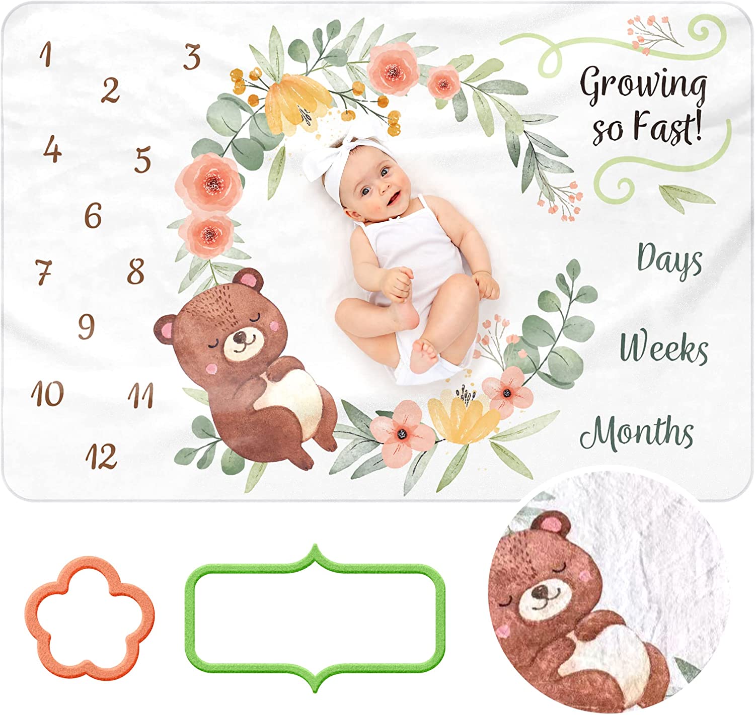 • 【 Bonus Accessories】 Each one of our monthly baby blanket sets come with 2 placement markers to track your baby's progress! Customers can't stop telling us how much fun they have with our milestone baby blanket sets!