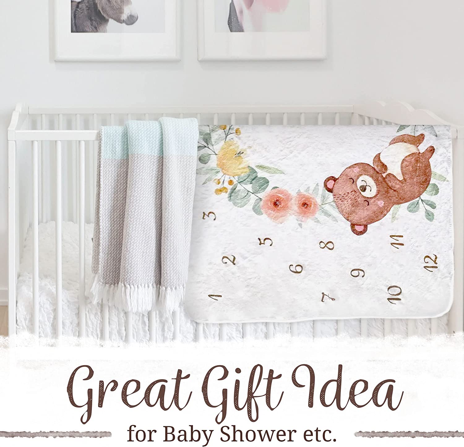 Milestone Blanket with 2 Placement Markers , Gender Neutral Baby Milestone , Baby Monthly Milestone , Baby Milestone Blanket , Baby Monthly Milestone Blanket , Baby Growth Chart Blanket (60"x40")