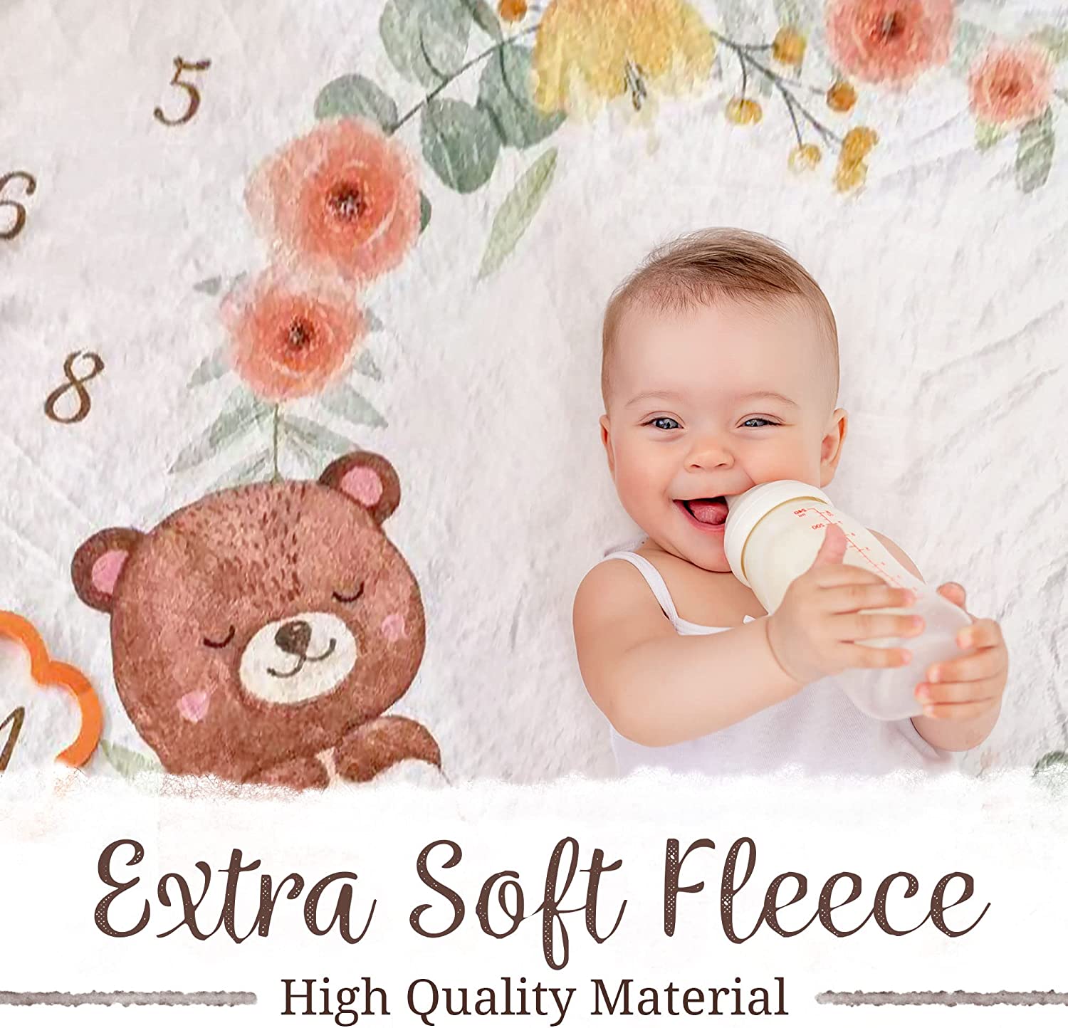 • 【 Beautiful Aesthetics】 Our month blanket come with a very cute design that can accommodate any picture/setting for your child! Take some beautiful pictures of your baby with our month baby blanket to send to family, friends, and loved ones!