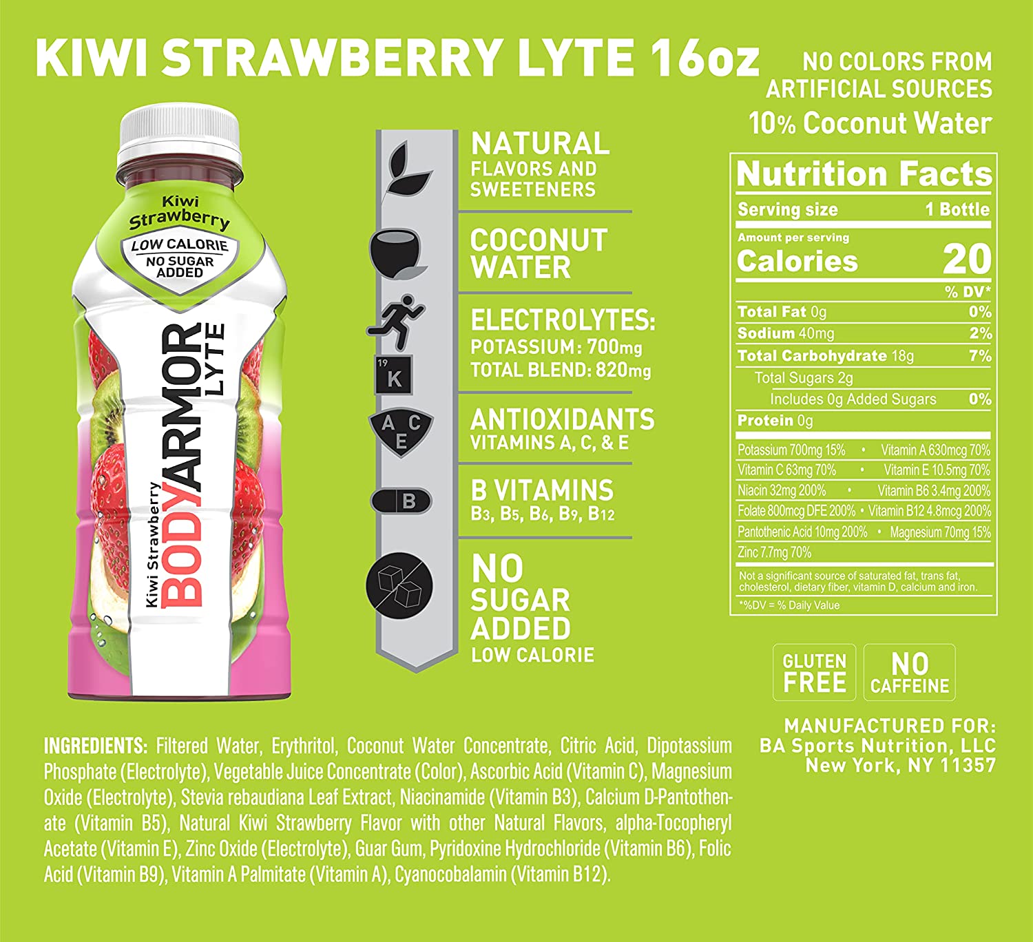 BODYARMOR LYTE Sports Drink Low-Calorie Sports Beverage, Kiwi Strawberry, Natural Flavors With Vitamins, Potassium-Packed Electrolytes, Perfect For Athletes, 16 Fl Oz (Pack of 12)