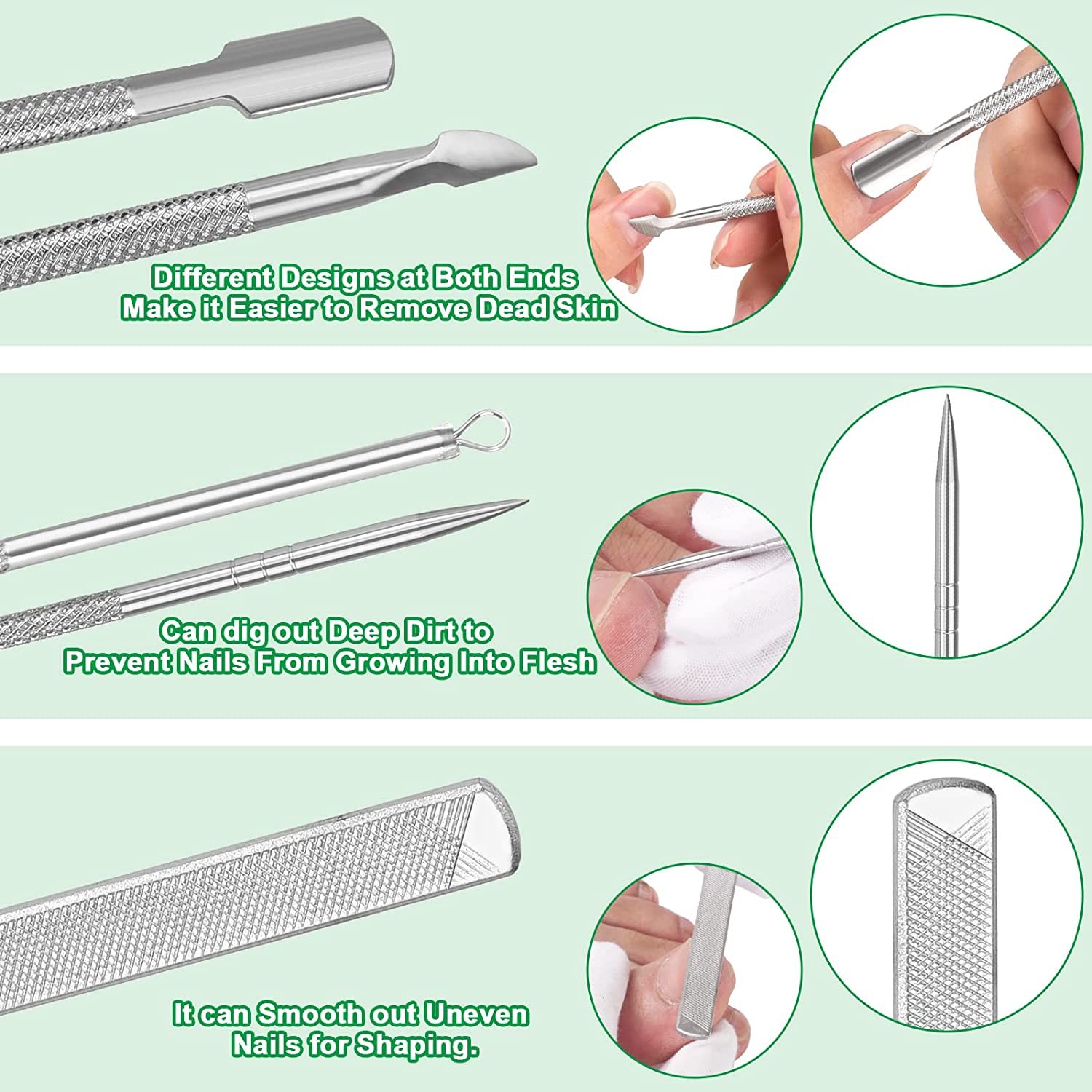 • ✔ CHEAP AND CONVENIENT: These nail tools can meet all of your nail care demands, even different nail shapes and thicknesses, get your perfect nail without any difficulty. Moreover, it would be a great idea to take care of your nails at home without having to go to nail salons. This sets of nail tool is definitely money-efficient and time-saving