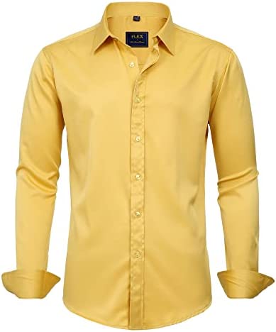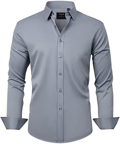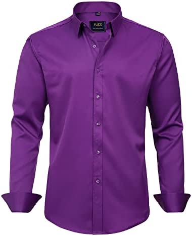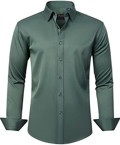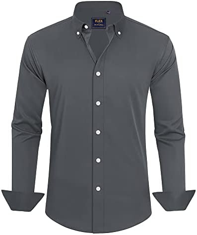 【Flex Fabric】The long sleeve dress shirt is made of stretch fabric,makes you move body easier;soft and comfortable with good breathability