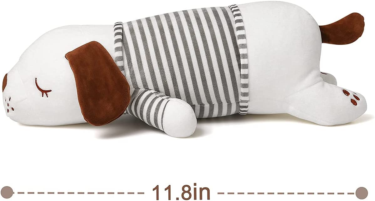 - THE PUPPY HAS EMBROIDERED PAW PRINTS AND EYES. And, the tummy is chubby and cuddly. it is perfect for a cuddle.