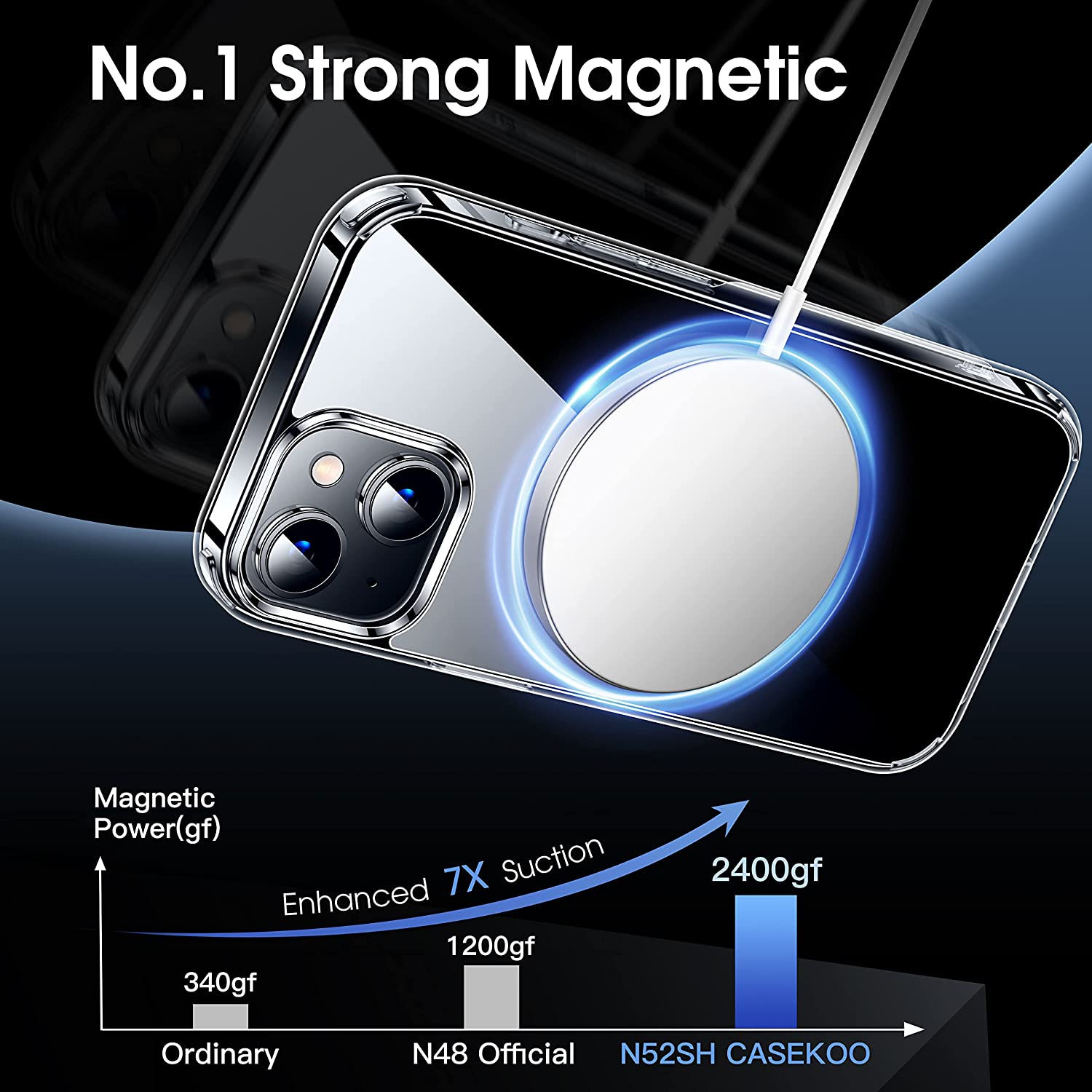 CASEKOO Magnetic Clear iPhone 14 Case & iPhone 13 Case [No.1 Strong Magnets][Never Yellow][Military Grade Drop Protection] Compatible with MagSafe Protective Slim Thin Cover 6.1 inch 2022-Clear