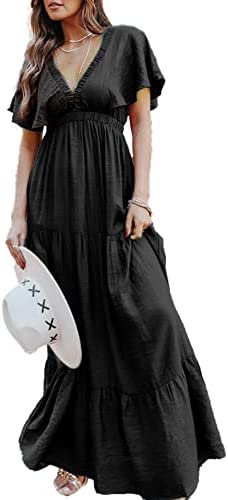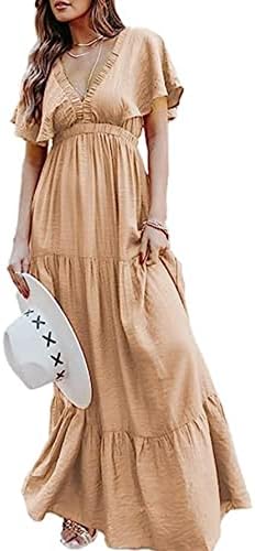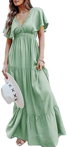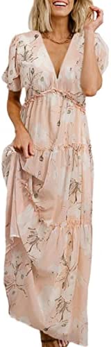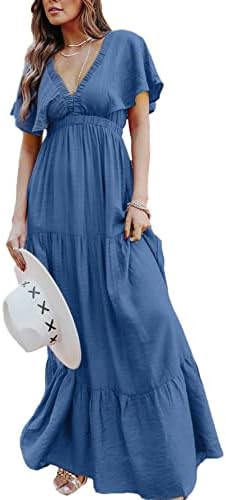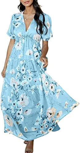 ?Style -Maxi Dresses for women Summer, Casual Summer Beach Boho Long Dresses,Soft stretchy high waist Dress,Flowy Long Dress,Elegant V neck Empire Waist pleated Party Dress,Maternity maxi dress.Suitable for Spring,Summer and autumn easy to carry out for many occasions-beach/casual/party/evening/wedding/home/Holiday ect