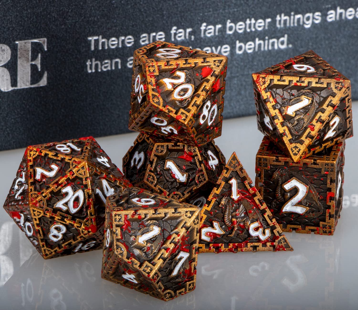 • 【Exceptional craftsmanship】:DND metal dice adopts unique dragon element design. The numbers on the D&D dice are clear and easy to read, with perfect details and well-made. When they are put on the table, they will get a lot of compliments and envy.
