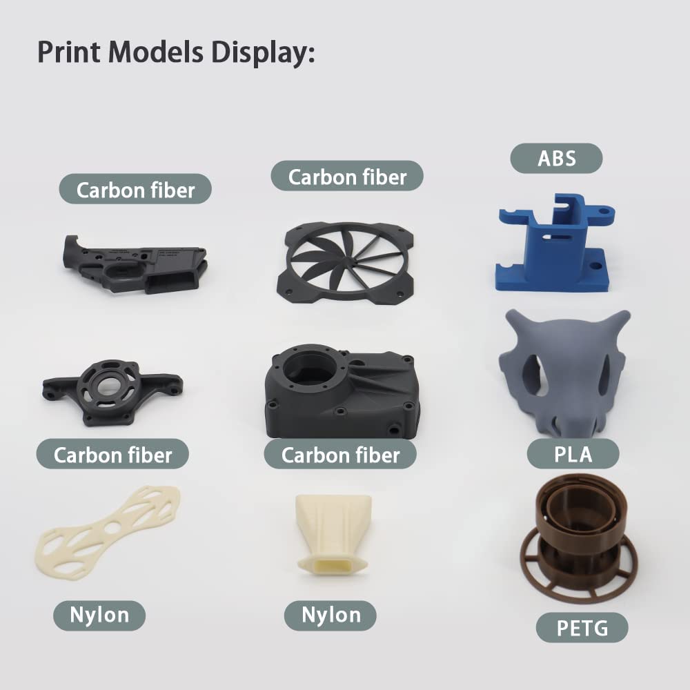 【Design Concept】X-CF PRO is a 3d printer specially designed for printing carbon fiber and nylon filaments.Independent research and development of the latest generation single extruder system, which uses high-temperature alloy material, dual-gear extrusion, can solve the problem of the accuracy is not very accurate or service life is not long when printing carbon fiber. Another set of normal high-speed extruder can easily print PLA, ABS, PETG and other filaments.
