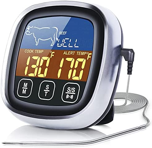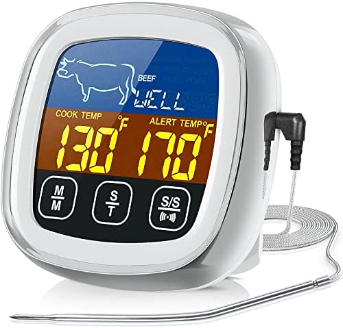 Pilita Digital Meat Thermometer for Cooking, 2022 Upgraded Touchscreen LCD Large Display Instant Read Food with Backlight, Long Probe, Kitchen Timer, BBQ, Oven, Silver