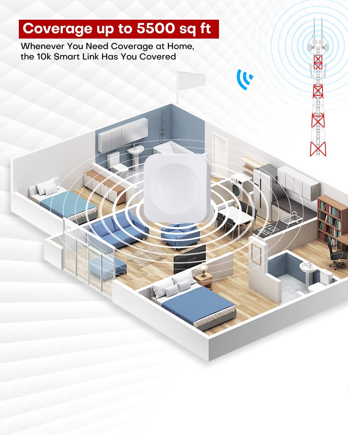 Hiboost Cell Phone Signal Booster for Home and Office, 5,500 sq ft, Boost 5G 4G LTE Data for Verizon AT&T and All U.S. Carriers, FCC Approved (10K Smart Link)