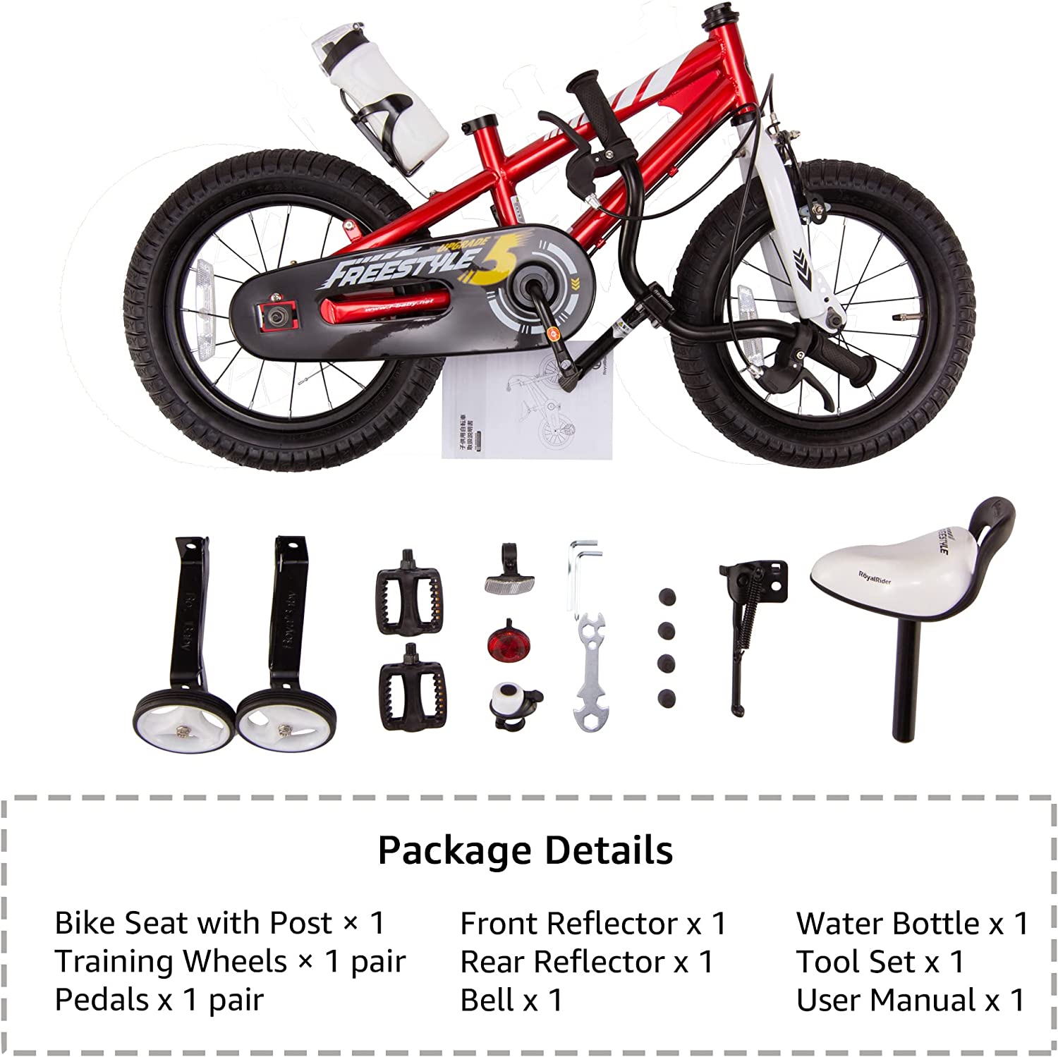 • ? SPECIFICALLY FOR KIDS. Each bike equipped with RoyalBaby patent sealed bearing for smooth pedaling. Training wheels come with 12/14/16 inch bikes, making it easy to maintain balance and learn to pedal even for young beginners. The water bottle and holder adds more joy to the ride. Fully adjustable seat and handlebar will give extra space when kids grow taller