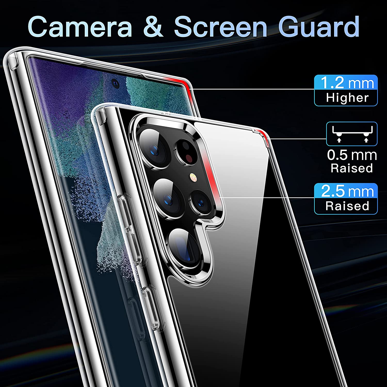 - ?[100% Crystal Clear & Never Yellow]: This crystal clear case is designed for Samsung S22 Ultra, fully shows the original beauty of your new Galaxy. After researching day and night select adopts upgraded Germany Top Bayer Material and Antioxidant molecule Layer to keep the long-lasting clarity than other. Shinning the beauty of your Galaxy all the time.