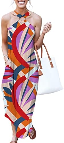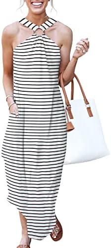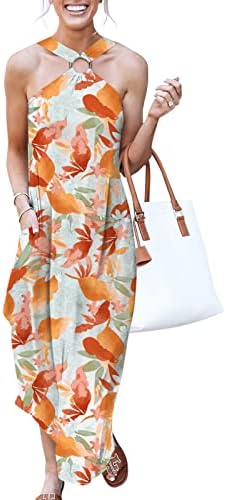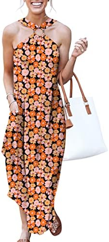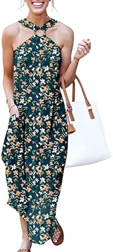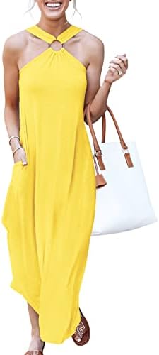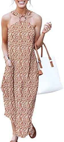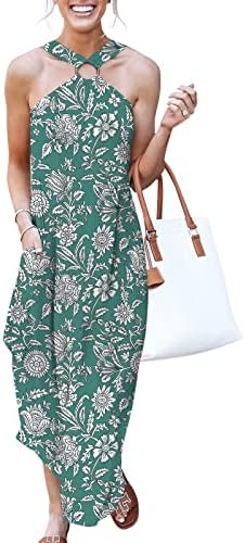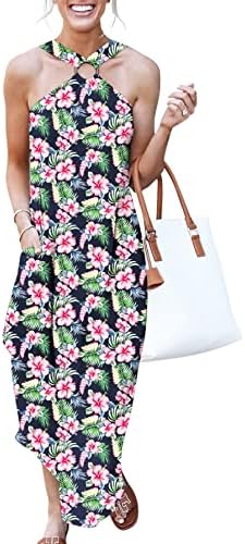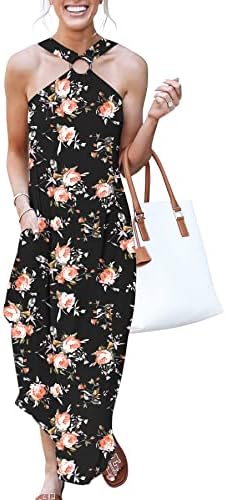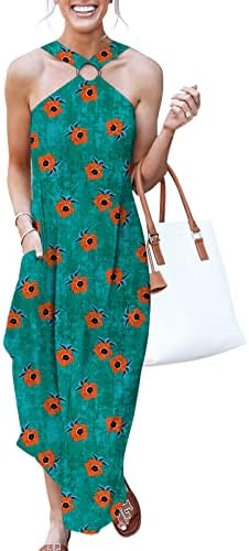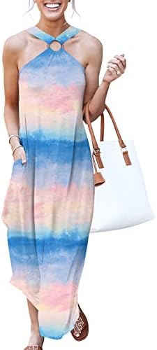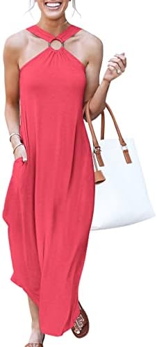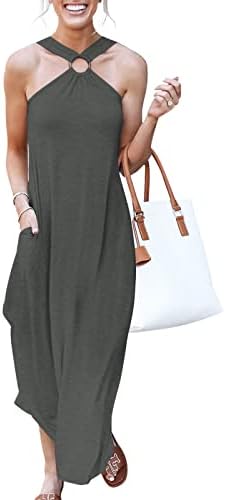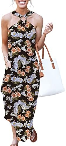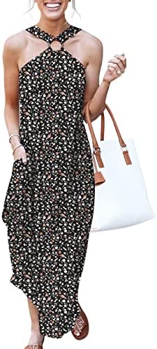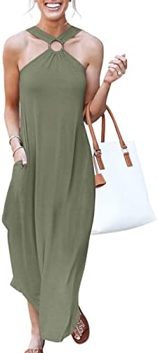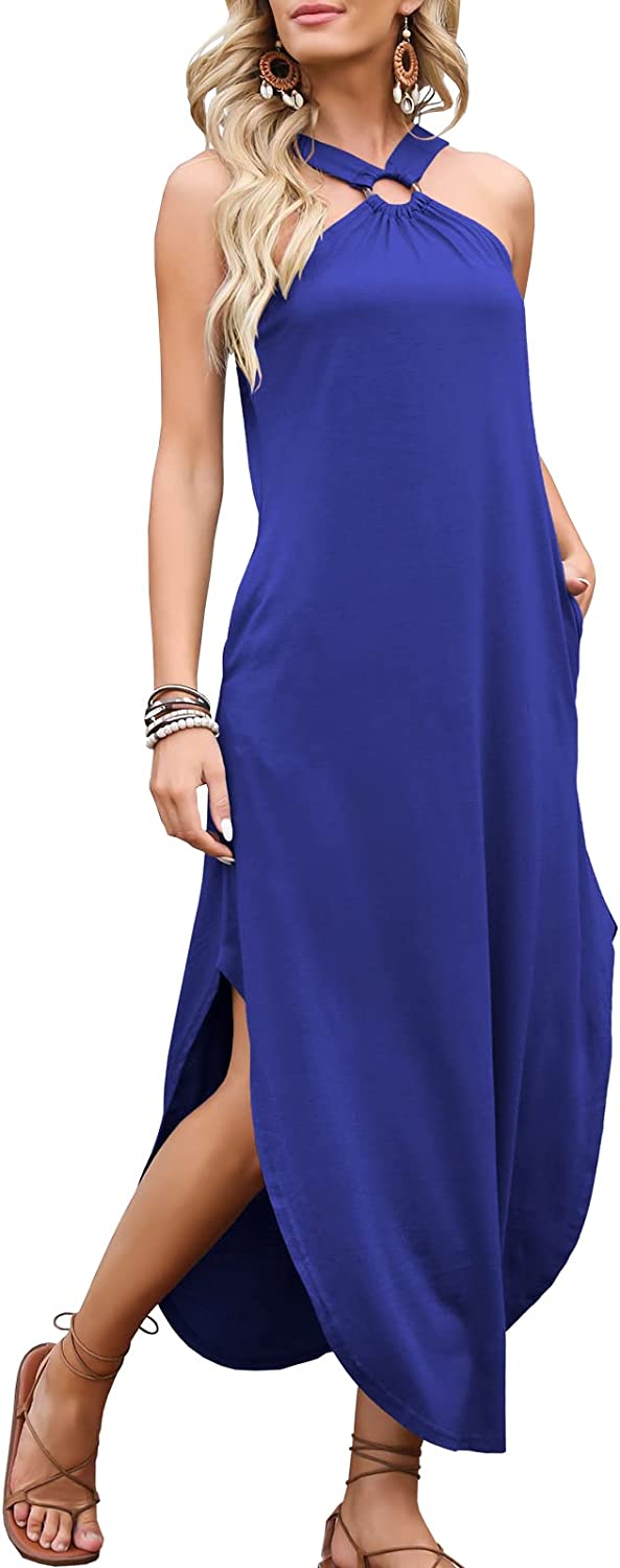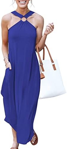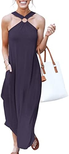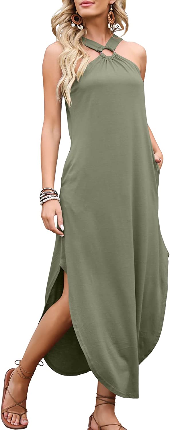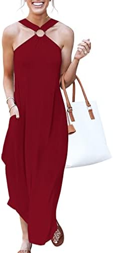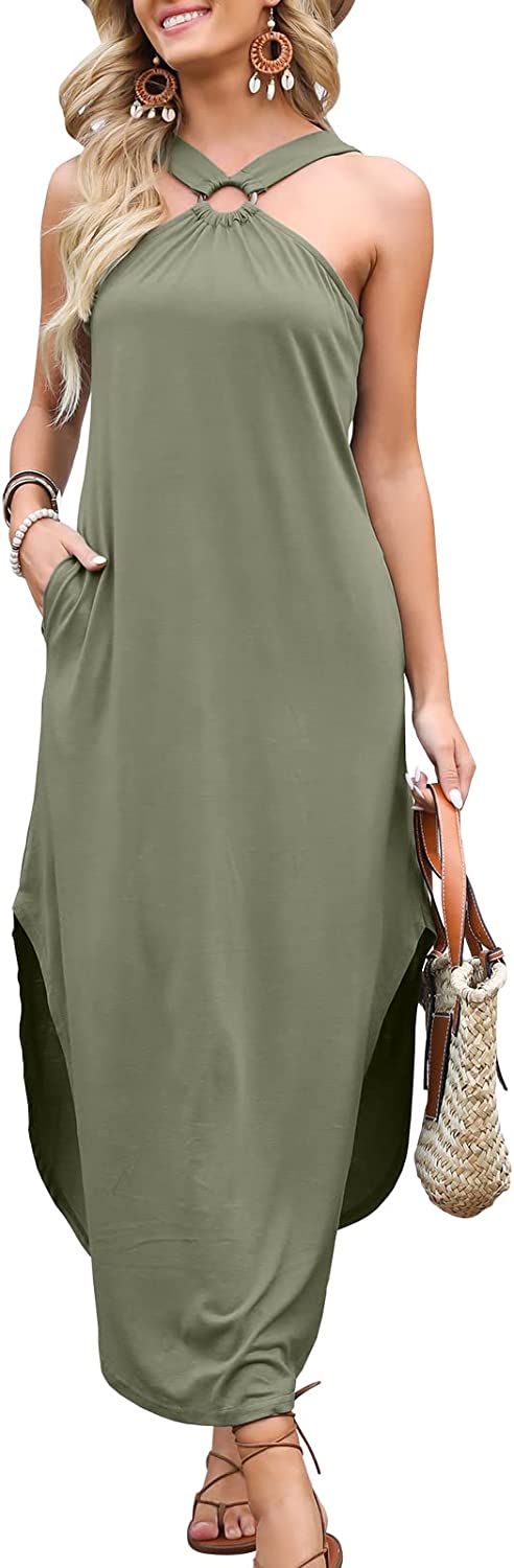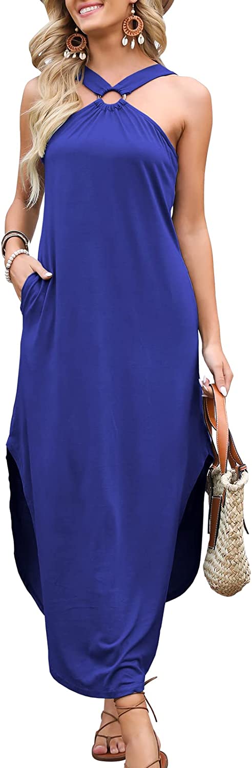 ANRABESS Women's Summer Casual Criss Cross Sundress Sleeveless Split Maxi Long Beach Dress with Pockets