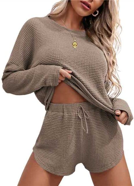 • Pajama Top: This casual womens loungewear set has a pullover top that features an crew neck, casual loose fit and solid color. This cute long sleeve Waffle top is full of stretchy, perfect for the relaxing season.