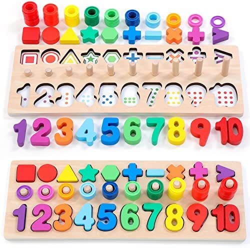 BEKILOLE Wooden Number Puzzle for Toddler Activities - Montessori Toys for Toddlers Shape Sorting Counting Game for Age 3 4 5 Year olds Kids - Preschool Math Learning Toys for Toddlers
